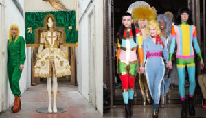Филипп Киркоров, Андрей Малахов, Виктория Шелягова (в меховом бюстгальтере) и Яна Рудковская на показе «Меха Екатерина»